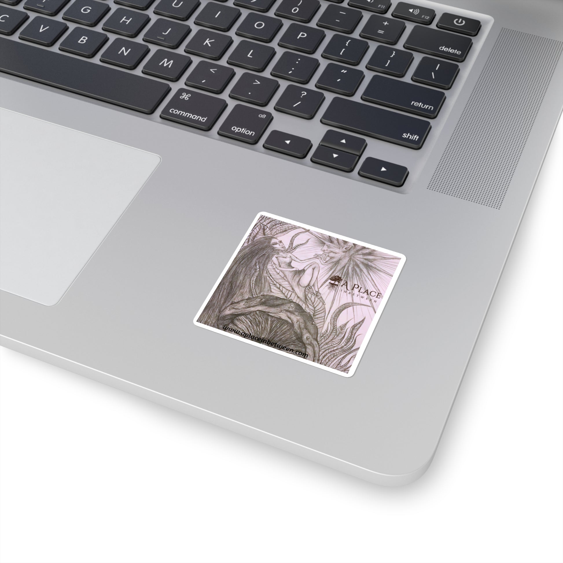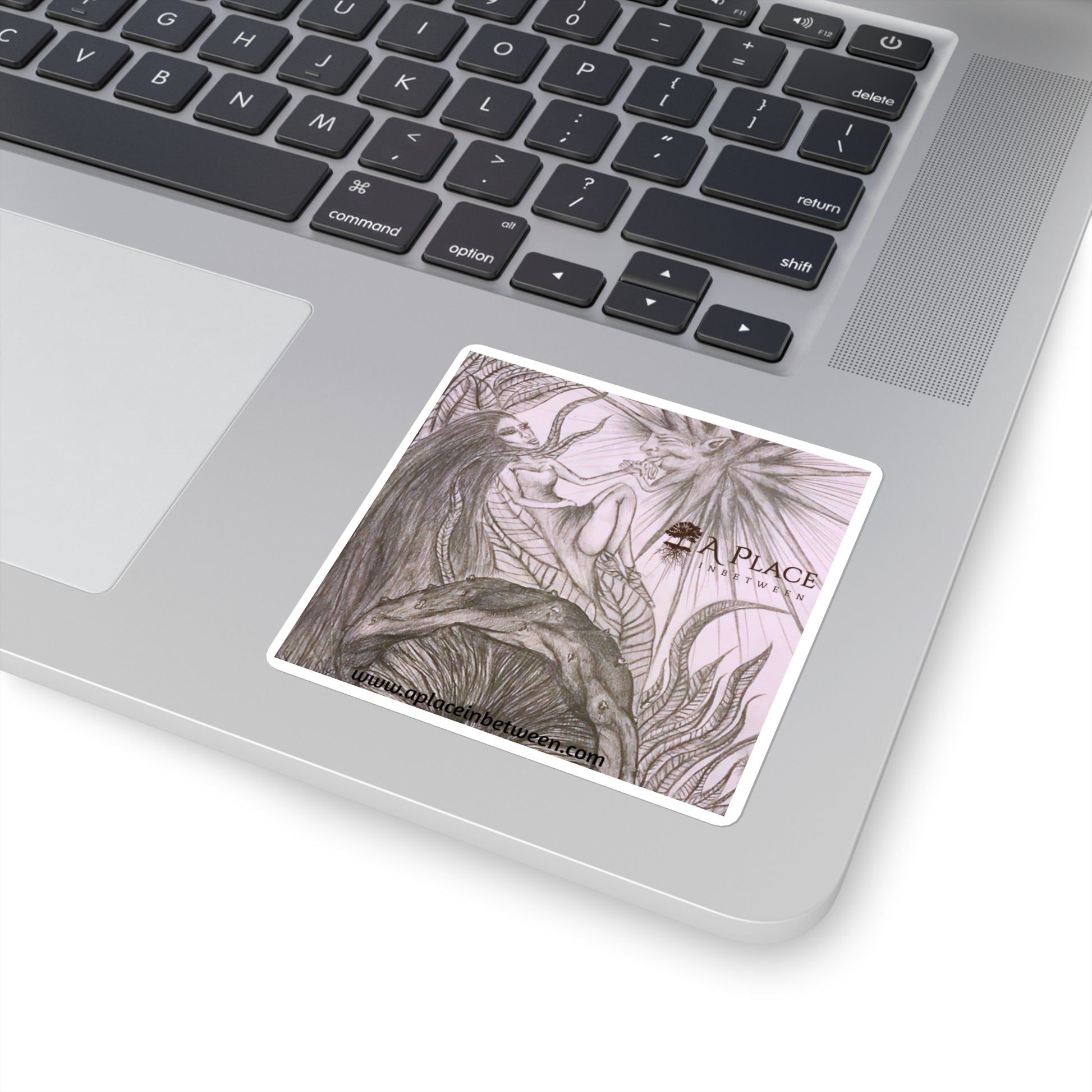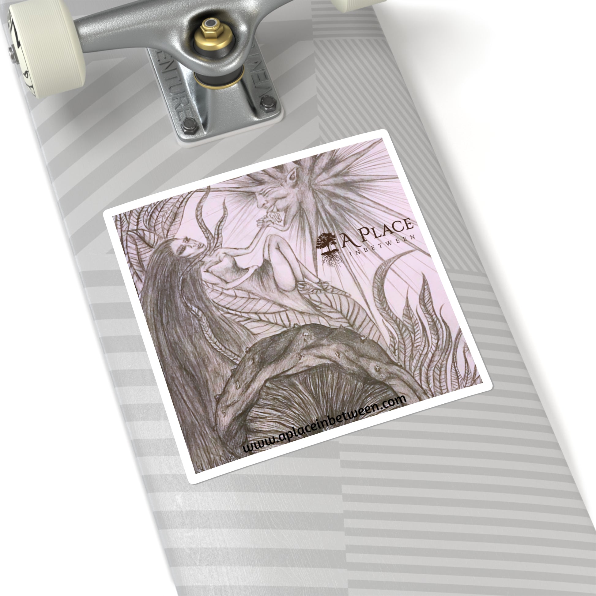 "Appreciation" Sketch, Plant Flow, Mushrooms , Fantasy Art Square Sticker — Mythic, Fairy Unique Artwork, Pencil