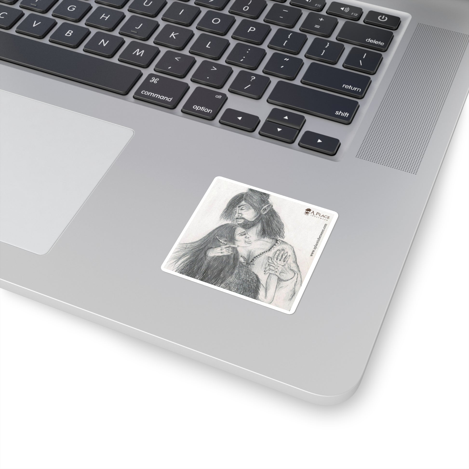A small square sticker that feels like a quiet, hand-drawn moment captured on your favorite things. The graphite-style illustration of two entwined, elf-like figures evokes soft longing and intimate stories — subtle, moody, and a little mysterious. Stick it on a laptop, sketchbook, or journal to carry a fragment of that wistful atmosphere with you. The glossy finish brightens the pencil texture while the durable vinyl and strong adhesive keep the artwork in place during everyday use. Because it’s printed with vivid eco-solvent inks, the contrast and fine details remain clear and expressive, making each sticker feel like a tiny piece of original art.