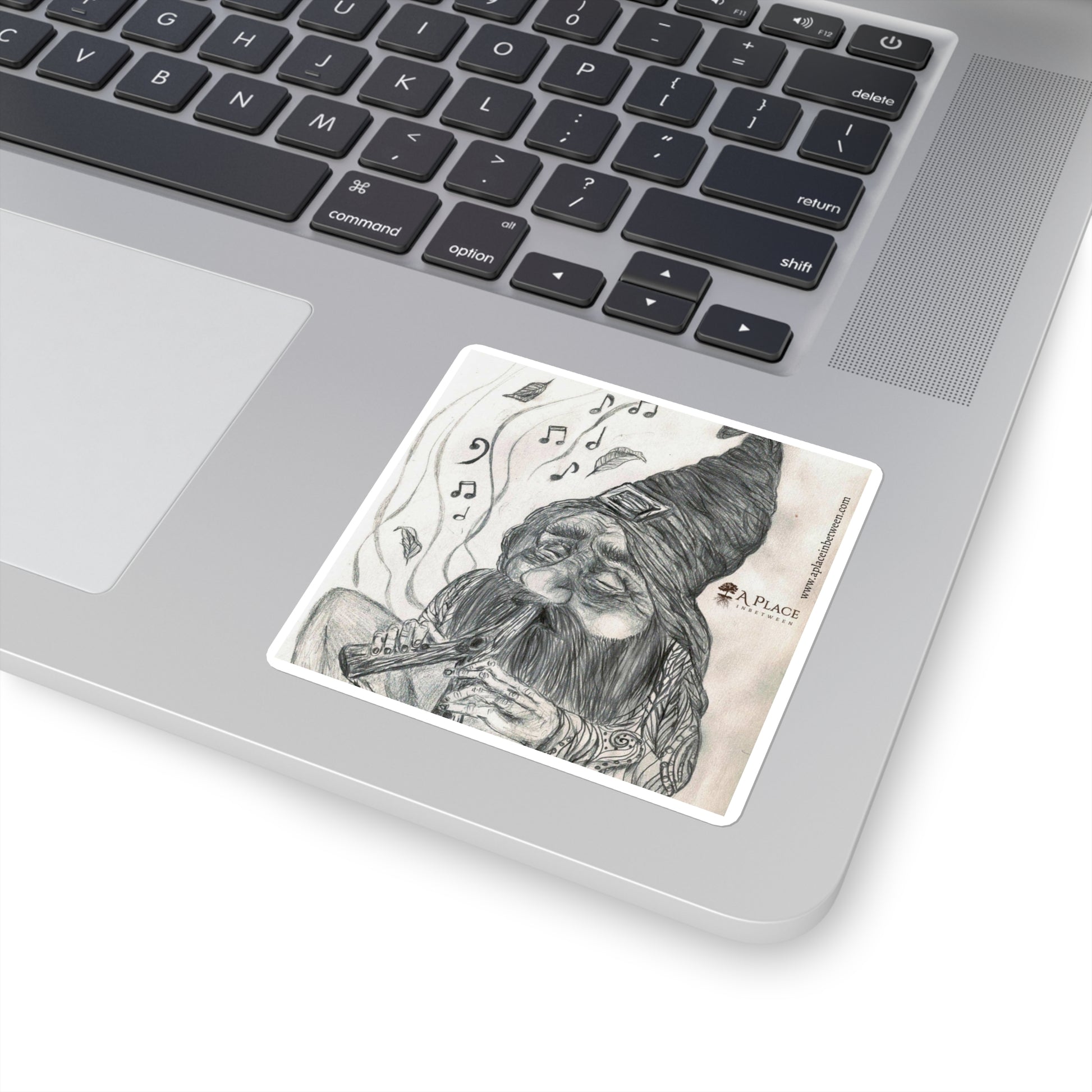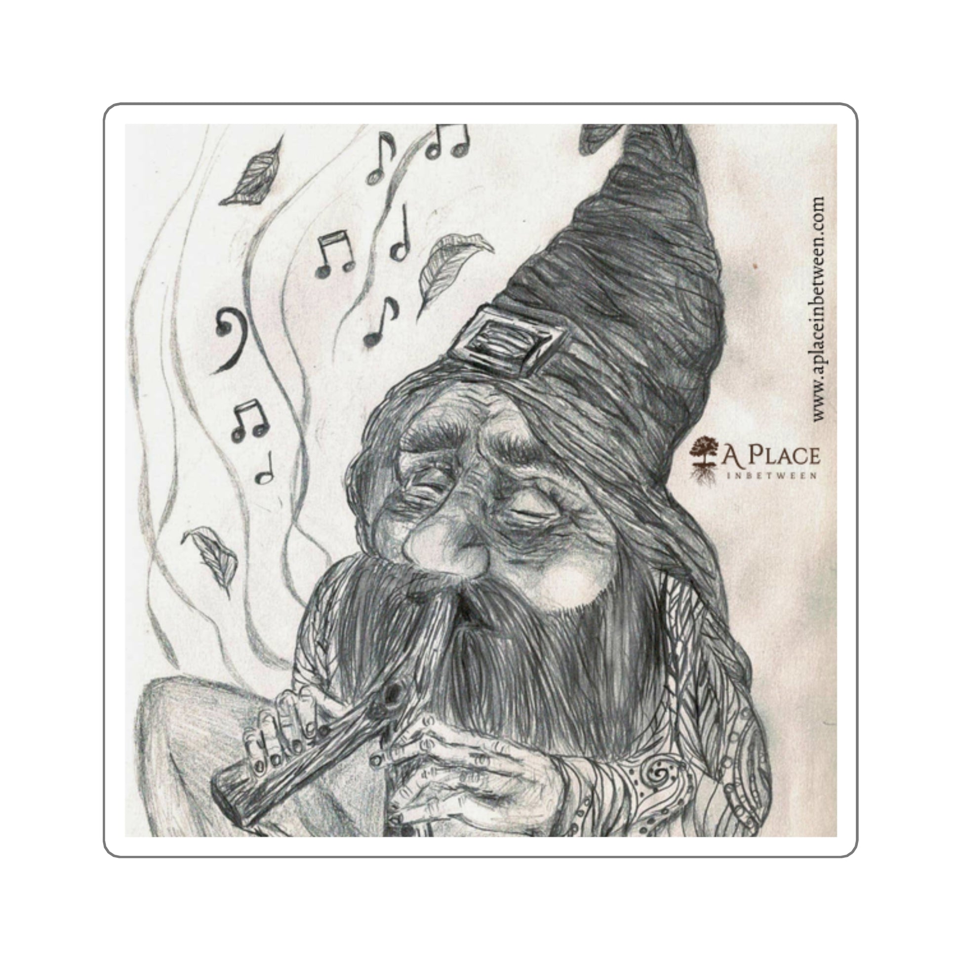 Gnome Flute Square Sticker – Hand-Drawn Whimsical Musician Decal