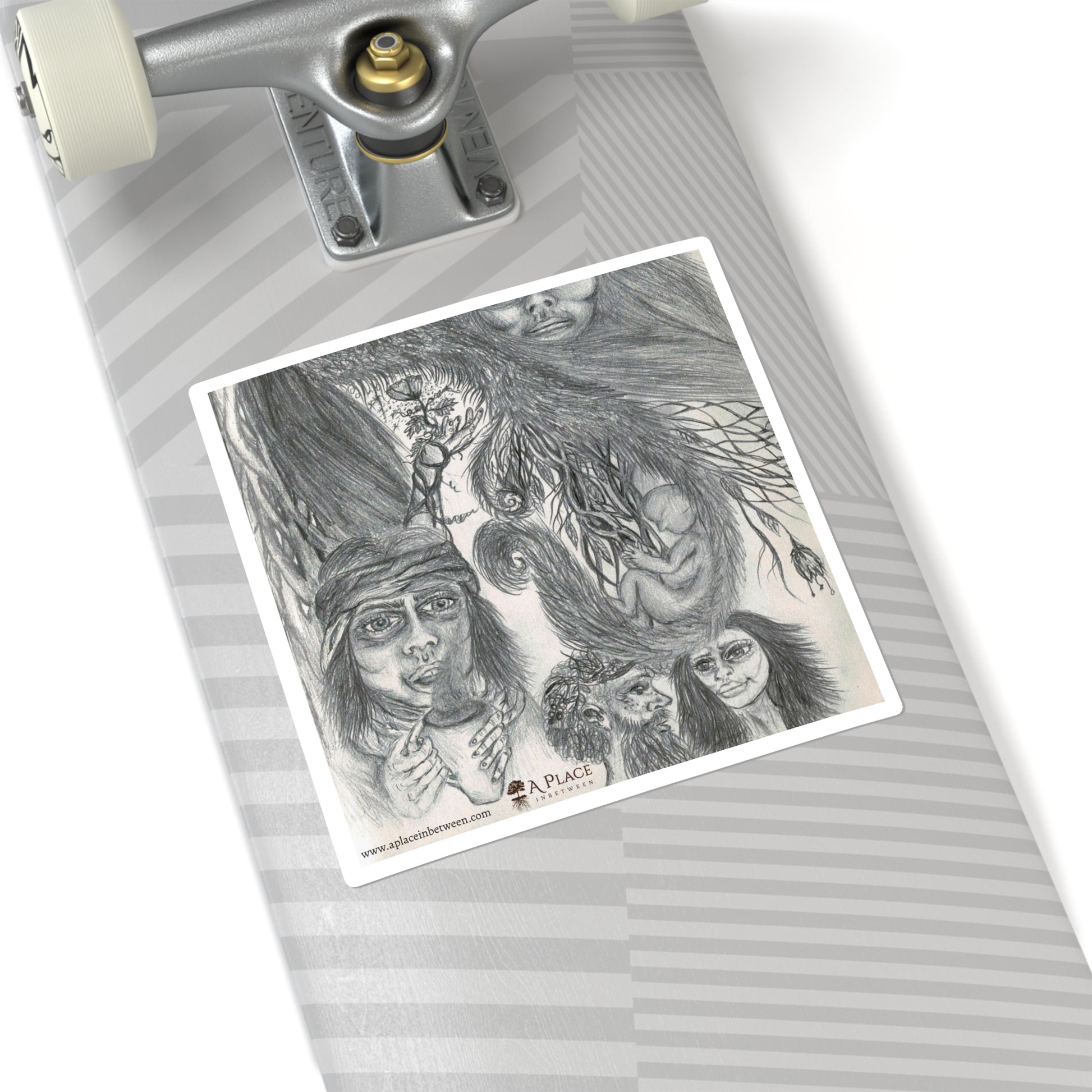 Hand-drawn pencil imagery becomes a little world you can stick anywhere. This square vinyl sticker carries layered faces, hidden figures and organic textures in soft graphite tones — a quiet, slightly uncanny scene that invites lingering looks. It clings smoothly to laptops, sketchbooks, water towers and gallery walls, adding an artful, introspective accent to everyday surfaces. The glossy finish brings out depth in the shading while the durable vinyl keeps the image crisp through regular use. For collectors of sketchbook-style art and people who favor moody, contemplative visuals, this sticker feels like a small talisman of creative thought.