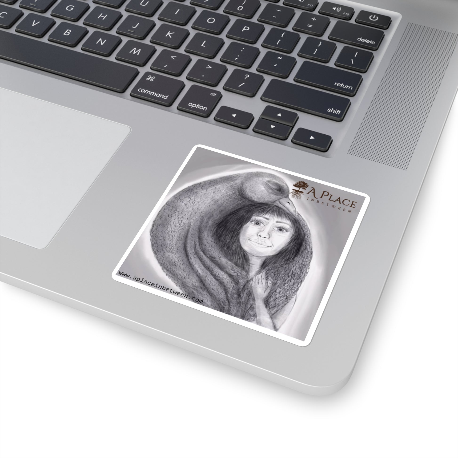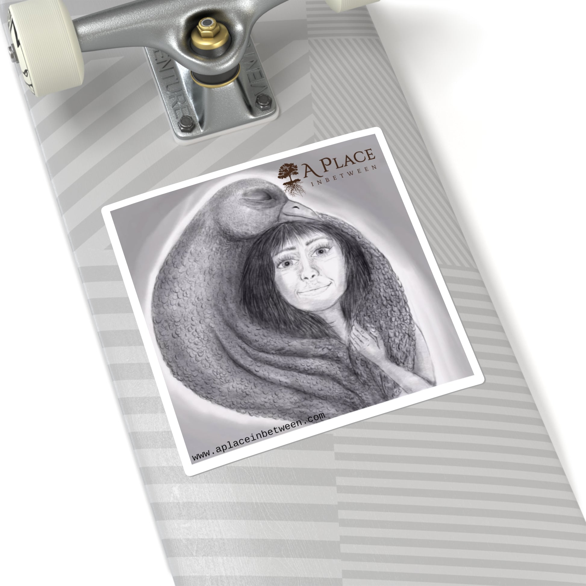 'Protected ' Fantasy Eagle Hugging Girl,Square Sticker, Hand Drawn sketch